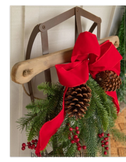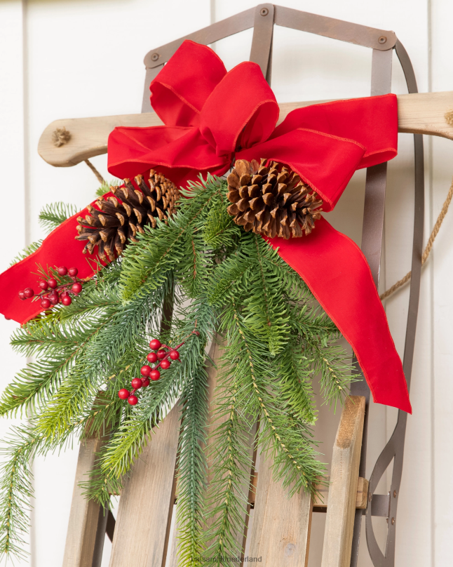- bestaat uit dennen- en cederbladeren met dennenappels, bessen en een rode strik