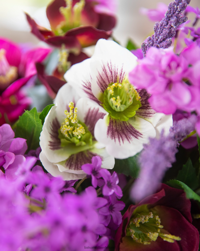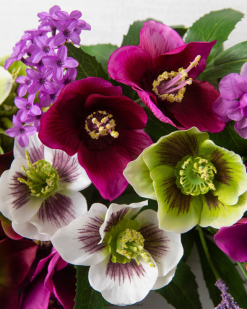 - Alle producten in deze collectie bevatten een scala aan realistische helleborussen, seringen en lavendel.