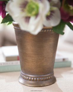 - set in een keramische pot met antieke zilveren afwerking, met een diameter van 15,5 cm en een hoogte van 18,5 cm