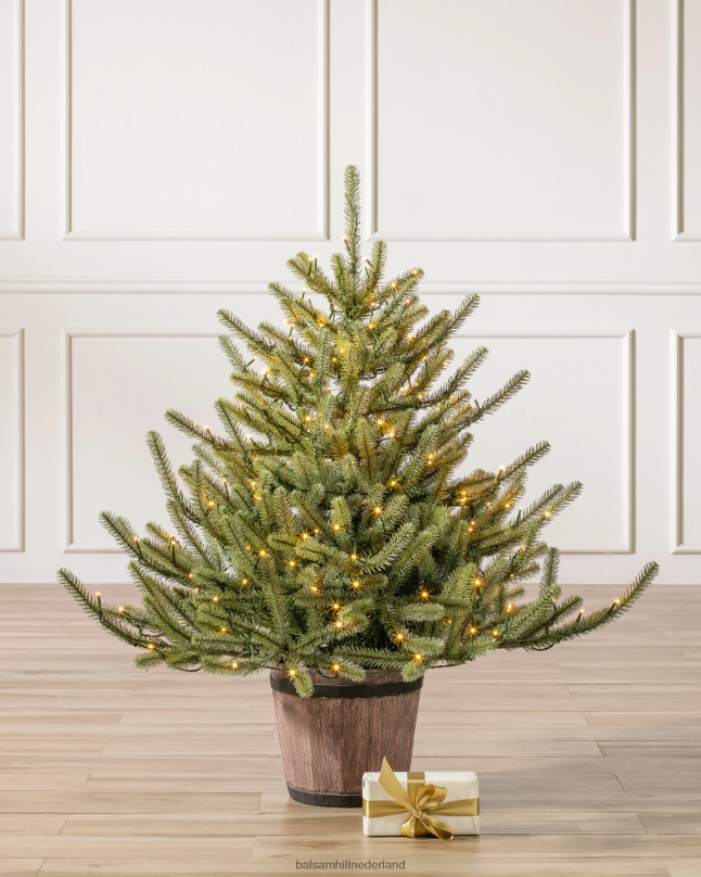 een miniatuur van onze eigen sanibelspar , deze kerstboom in pot heeft een sober ontwerp en heeft hetzelfde organische silhouet met ruime openingen tussen de takken voor een realistische uitstraling.