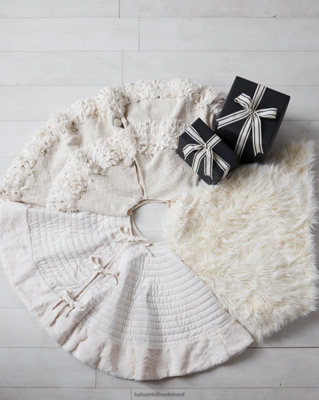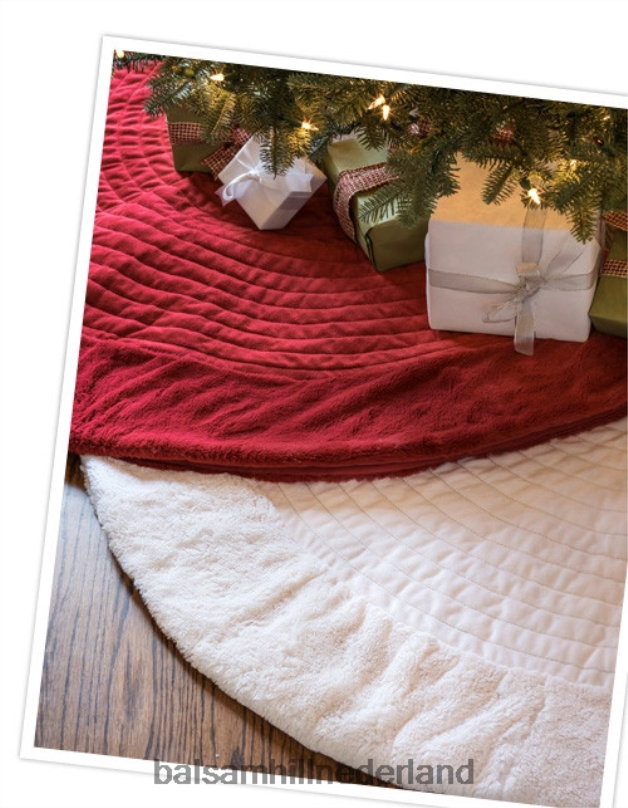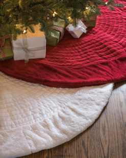 Voeg ingetogen elegantie toe aan je kerstboom met een pluchen boomrok. Met een channel stitch-quiltpatroon en een concentrisch cirkelvormig ontwerp geeft dit accent een eenvoudige maar verfijnde look aan uw decoratie.
