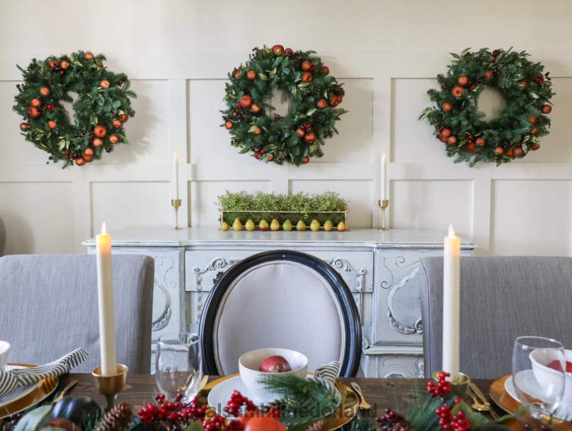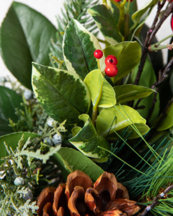 - alle producten in deze collectie zijn voorzien van echte naalden sup> gebladerte geaccentueerd met bessen, vergulde bladeren en koperkleurige appels.