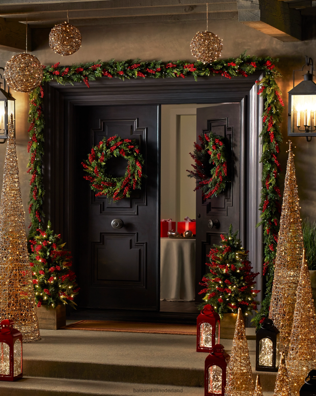 Begroet iedereen met vakantiegroen vol bessen. creëer vrolijke ramen, veranda’s en patio’s met klassieke kersttinten.
