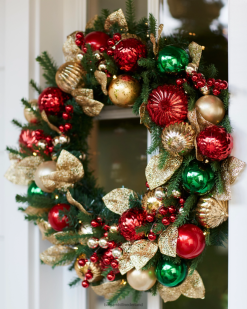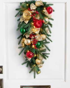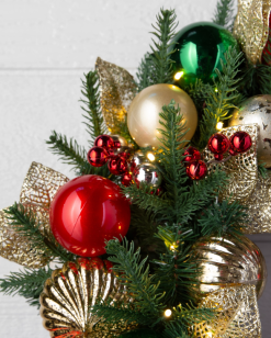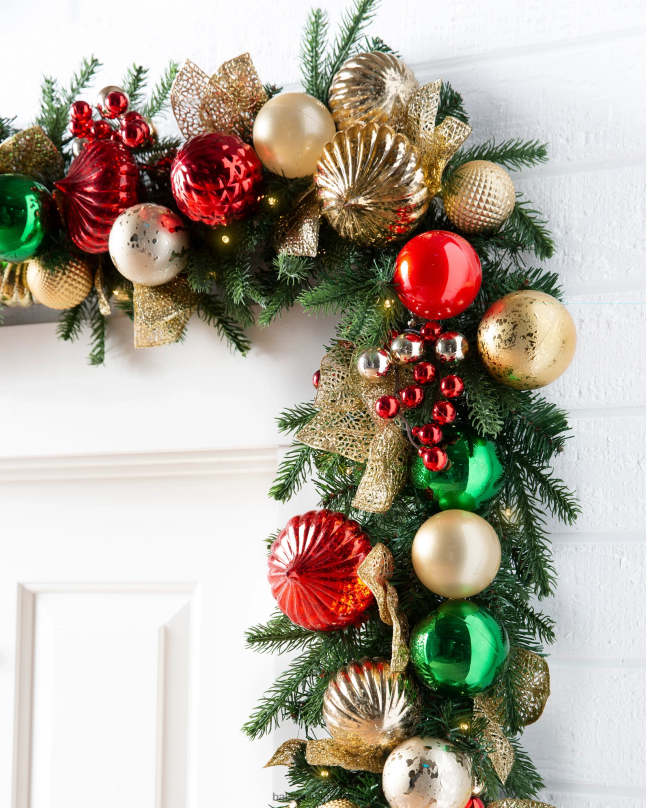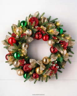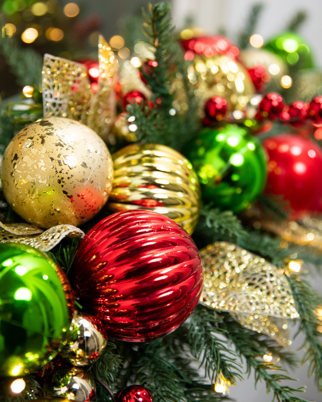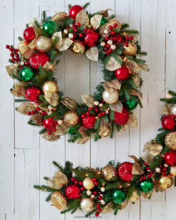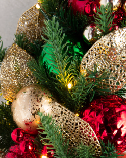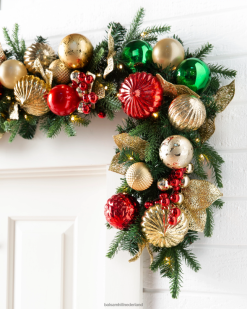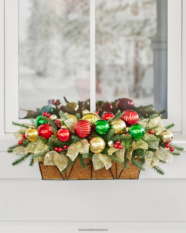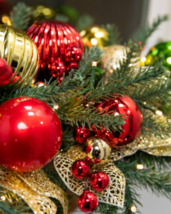 - alle producten in deze collectie zijn voorzien van gouden glitterblaadjes, rode en gouden bessentakken en rode, groene en gouden, breukbestendige ornamenten.