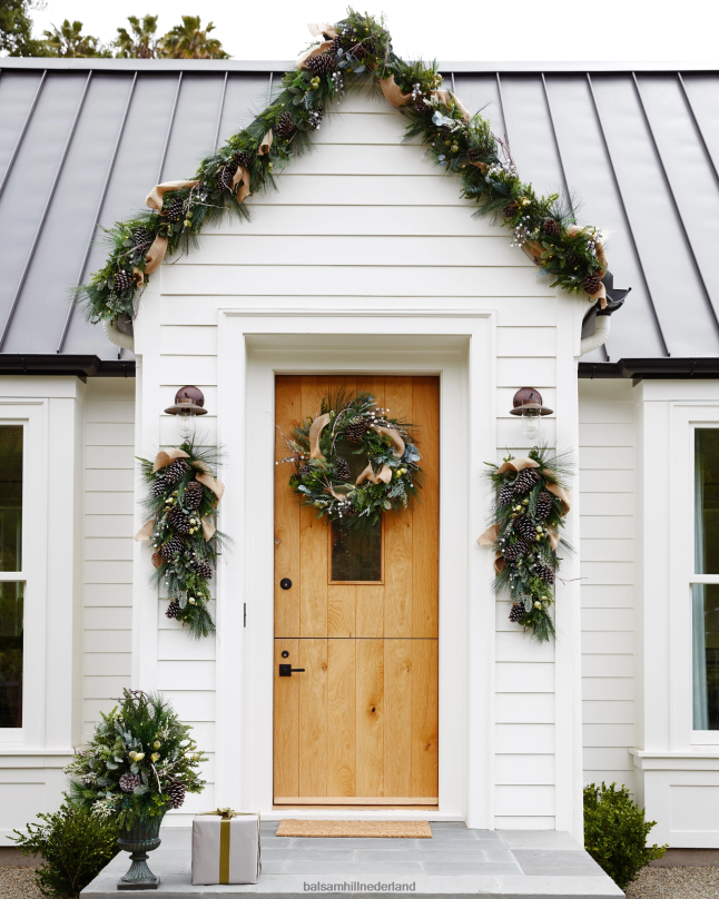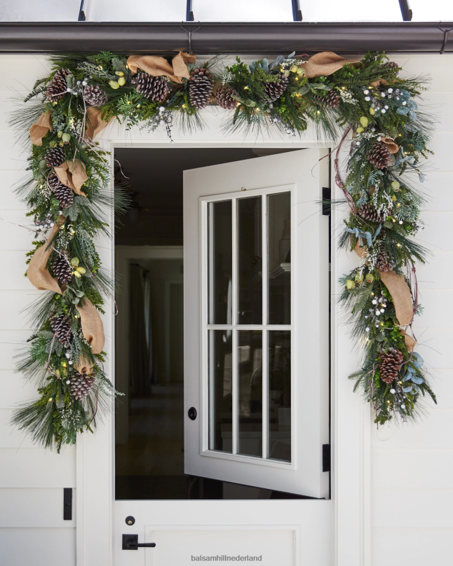 Breng de charme van het platteland in uw vakantiehuis. deze weelderige mengeling van groenblijvende bladeren vormt een elegante achtergrond voor eenvoudige of speciale feesten.