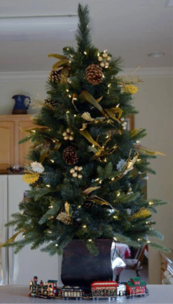 Voeg een beetje sprankeling toe aan uw vakantievieringen met een vergulde kunstmatige dennenboom. groepeer verschillende hoogtes bij elkaar voor een gastvrij tintje aan ingangen of hoeken.