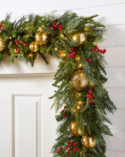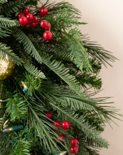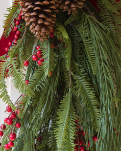 Voeg een feestelijke sfeer toe aan je huis met deze charmante bladercollectie. Rode bessen en metalen ornamenten fleuren uw kerstdecor onmiddellijk op.