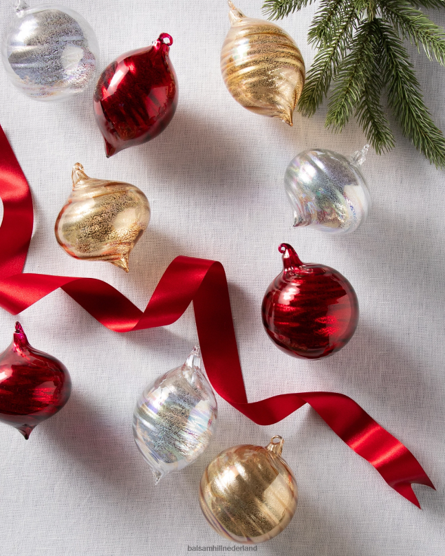 Voeg een verfijnde draai toe aan een klassieke kerstlook. combineer deze wervelende glazen ornamenten met andere BH Essentials-ornamenten om een prachtige textuur en glans aan uw vakantiedecor te geven.
