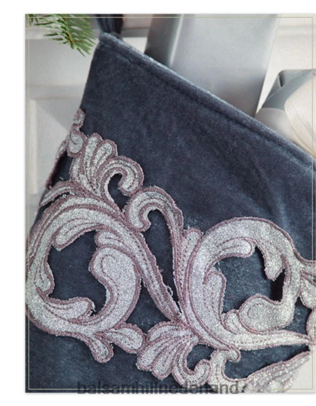 - bestaat uit blauwgrijs fluweel met zilver metallic appliqué en zilveren glitter acanthusbloemaccenten