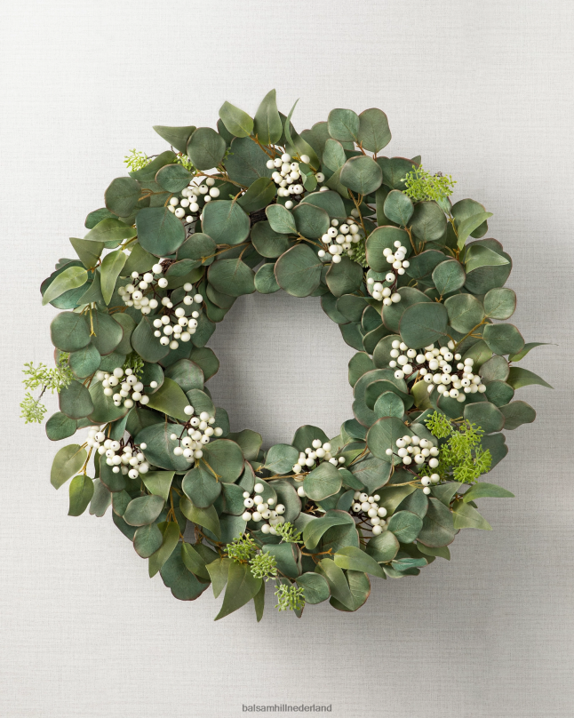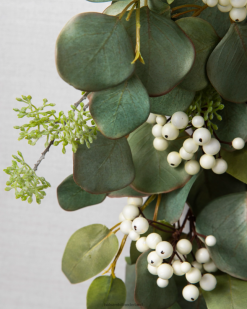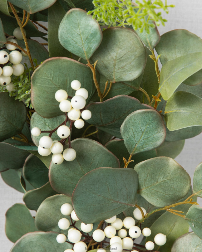 - alle producten in deze collectie bevatten een scala aan gezaaide, zilveren dollar- en wilgen-eucalyptusbladeren geaccentueerd met ivoren bessen