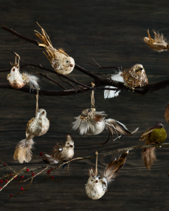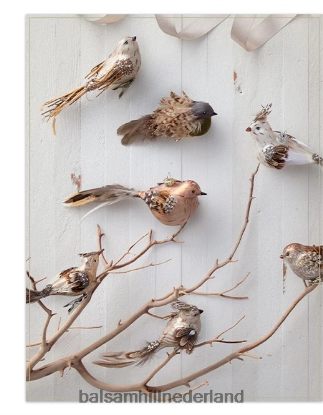 - functie glazen vogelornamenten geaccentueerd met echte veren