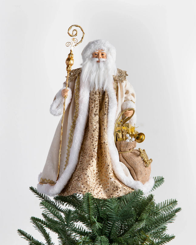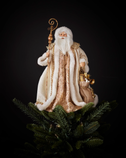 Voeg een luxueuze finishing touch toe aan je decoratie met een accent van goud en glitter. plaats dit ingewikkeld verfraaide figuur bovenop uw boom, op de schoorsteenmantel of op tafelbladen als aanvulling op uw feestelijke presentatie.