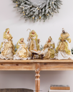 deel de inspirerende sfeer van het seizoen met een mooie herinnering aan de eerste kerst. Deze hartverwarmende kerststal is met de hand vervaardigd en vormt een betekenisvolle aanvulling op de kersttradities van uw gezin.