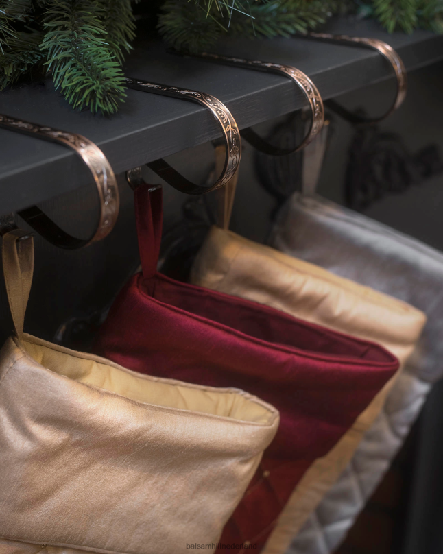 Houd uw kerstsokken veilig en op hun plaats met de originele mantelclip van balsam hill. Deze lichtgewicht kerstsokhouder is gemaakt van stevig gegalvaniseerd staal met een handgeborstelde antieke koperen afwerking en kan worden aangepast aan verschillende vormen en maten van schoorsteenmantels, zodat hij er niet gemakkelijk af valt. met deze doordacht ontworpen koushanger hoeft u zich geen zorgen te maken over schade veroorzaakt door bevestigingsmiddelen of tegengewichten.