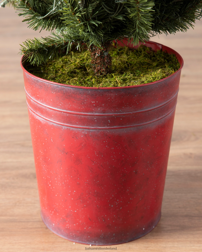 - set met natuurlijk mos in een rood gegalvaniseerde metalen pot met een diameter van 30 cm en een hoogte van 30 cm
