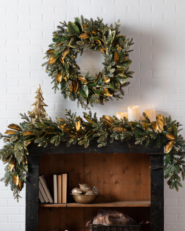 Balsam Hill verguld bladmagnoliagebladerte 8ZHB146 decoratie