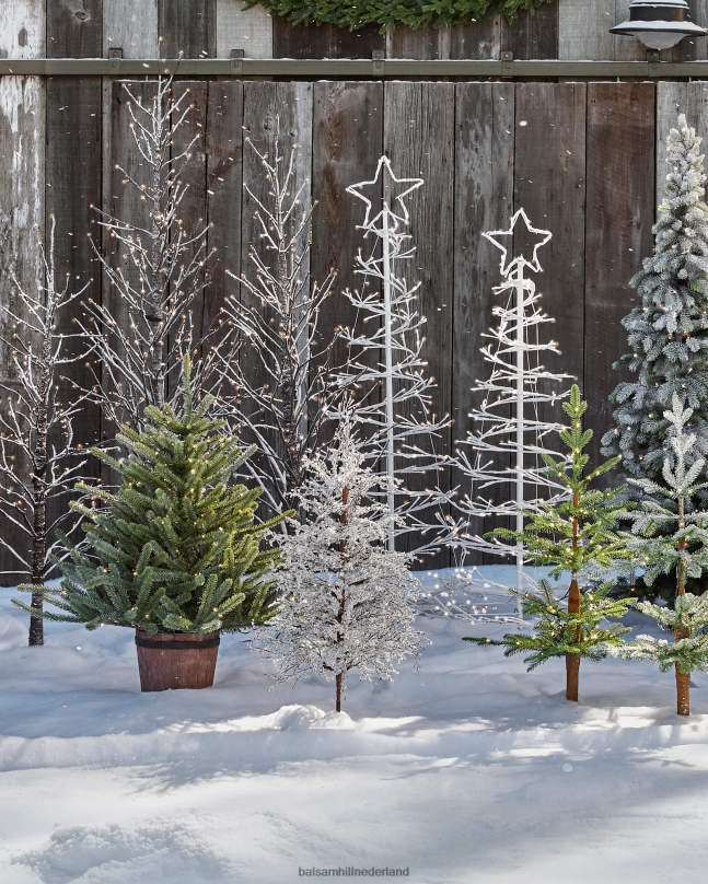 leg het prachtige uiterlijk van winterbossen vast. deze ijzige accentboom schittert met de gloed van kerstverlichting en creëert een betoverende scène voor je entree of schoorsteenmantel.