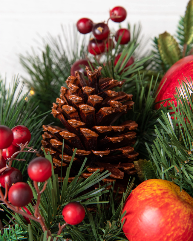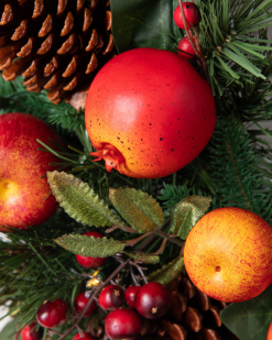 - Alle producten in deze collectie bevatten appels, granaatappels, dennenappels, rode bessen en diverse dennennaaldbladeren