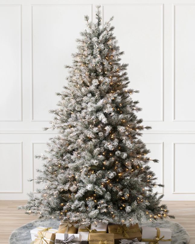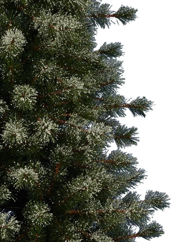 ontworpen naar de pinus lambertiana , deze met sneeuw bedekte kerstboom heeft middellange tot lange bosgroene dennennaalden die in plukjes zijn verzameld en worden geaccentueerd met een laagje zachte kunstsneeuw. de ‘getufte’ takken laten wat ruimte tussen het gebladerte, wat samen met zijn flexibele takken deze wit-matte kerstboom perfect maakt voor het ophangen van ornamenten.