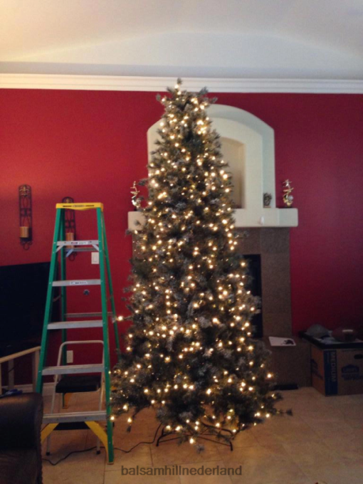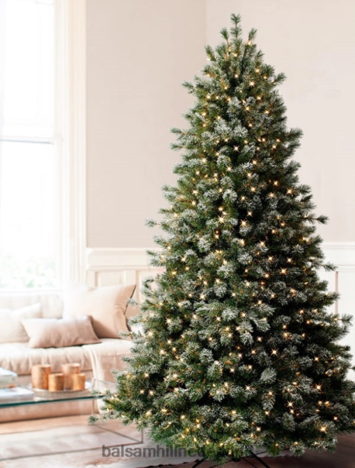 ontworpen naar de pinus lambertiana , deze met sneeuw bedekte kerstboom heeft middellange tot lange bosgroene dennennaalden die in plukjes zijn verzameld en worden geaccentueerd met een laagje zachte kunstsneeuw. de ‘getufte’ takken laten wat ruimte tussen het gebladerte, wat samen met zijn flexibele takken deze wit-matte kerstboom perfect maakt voor het ophangen van ornamenten.