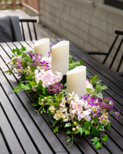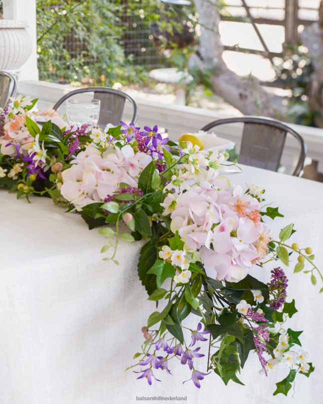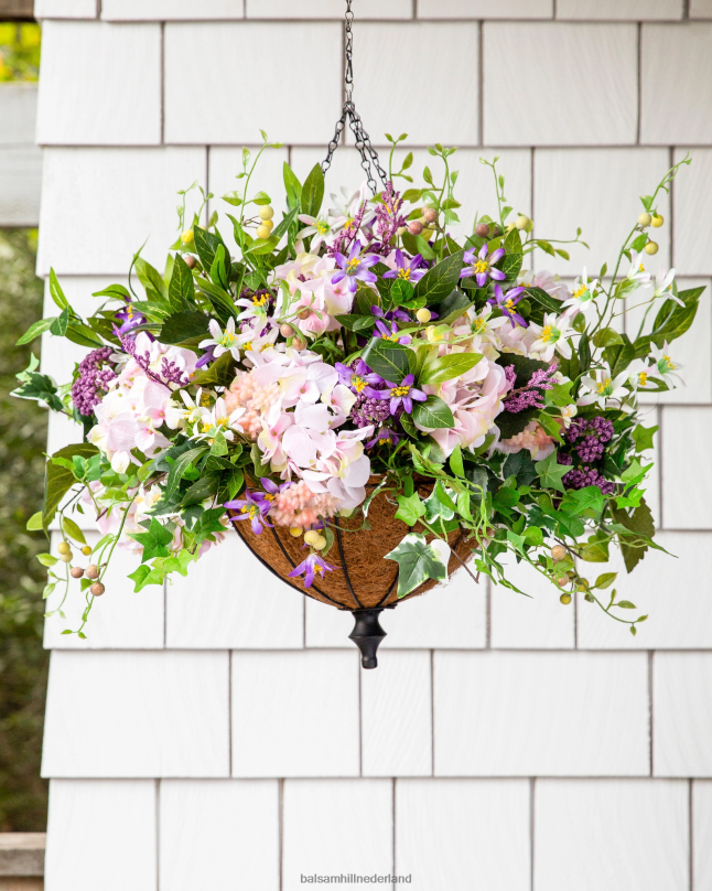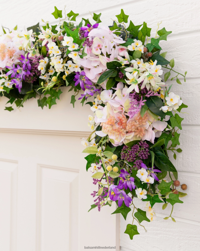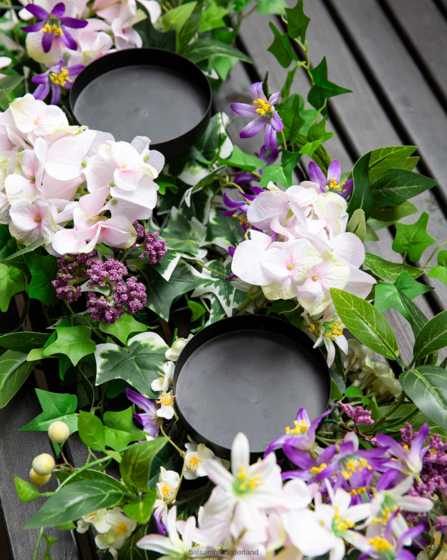 - alle producten in deze collectie zijn voorzien van een scala aan kunstgebladerte, waaronder: bonte klimop, mini-druivenbladeren , schuimbessen, nepgroen mos en pothosbladeren