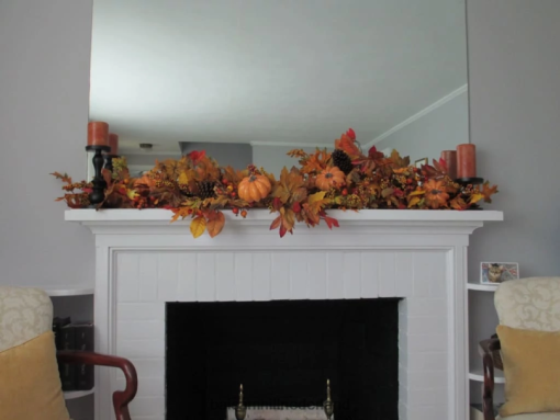 - alle producten in deze collectie bevatten een scala aan pompoenen, dennenappels, sinaasappelbessen, kleine bessentrossen en een mix van marmer-, eiken-, pioen- en magnoliabladeren