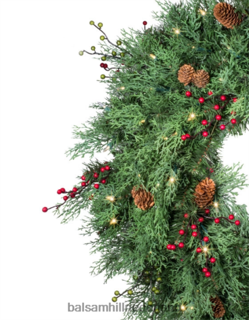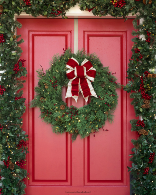 Begroet vakantiebezoekers en geliefden met de verfrissende aanblik van cipressengroen. weelderig blad geaccentueerd met gemengde bessen en natuurlijke dennenappels voegen direct charme toe aan elke ruimte.