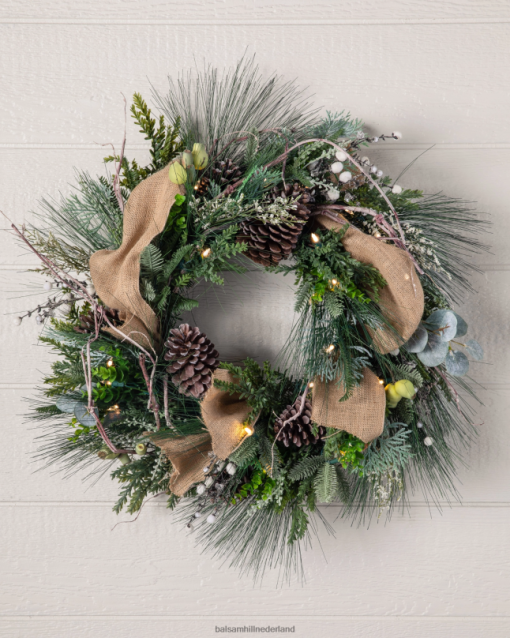 - alle producten in deze collectie zijn voorzien van gemengd blad geaccentueerd met eucalyptusbladeren, katoenstengels, twijgen, natuurlijke dennenappels en jutelint