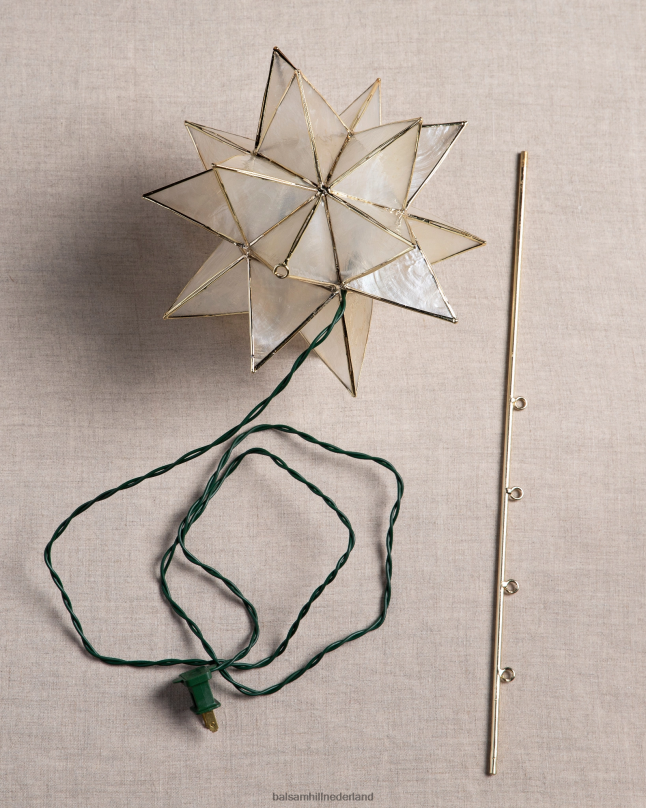 Maak het uiterlijk van je kerstboom compleet met natuurlijke capiz-schelpen. Deze 16-puntige stertopper wordt aangeboden in verschillende maten en kleuren en is overdag prachtig en ‘s nachts zelfs nog betoverender.