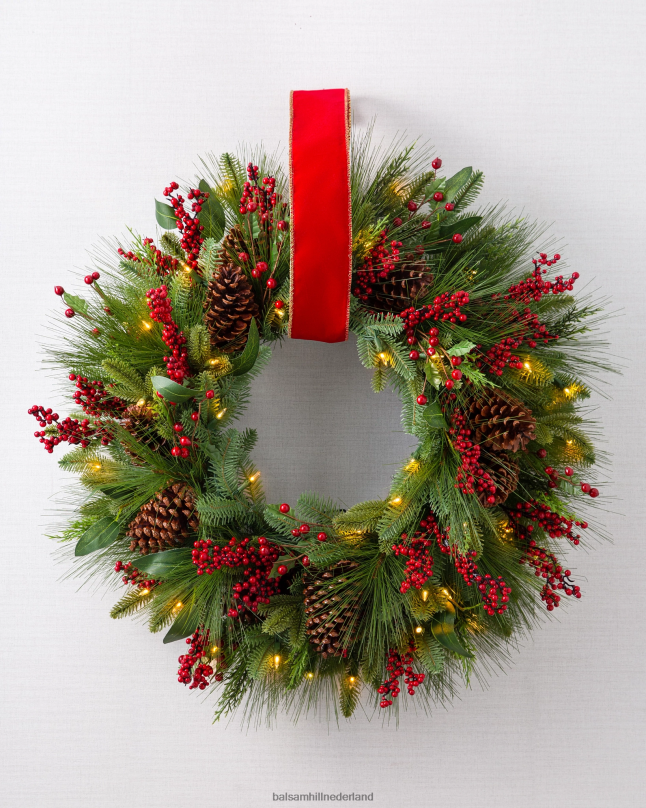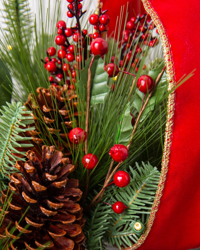 - alle producten in deze collectie zijn voorzien van echt naald blad geaccentueerd met lange naalddennen sprays, dennenappels en neprode bessen