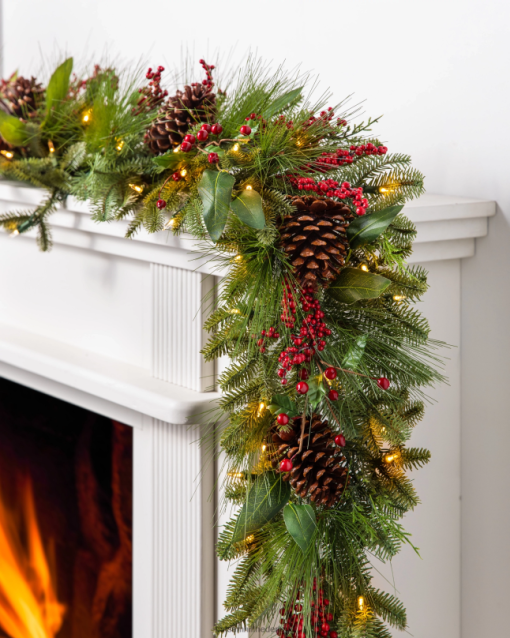 Creëer een sfeer van landelijk comfort met tijdloze kerstkleuren. levendige groenblijvende planten met felrode bessen en natuurlijke dennenappels verwelkomen de feestdagen met een vleugje rustieke charme.