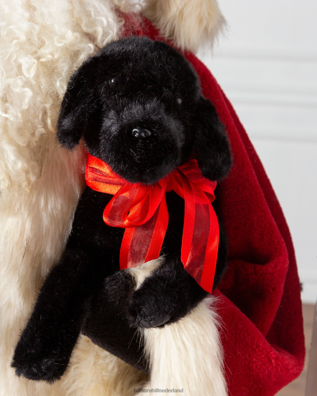 - beschikt over een natuurlijke wollen baard, houten stam, naturel dennenappels en nepbont