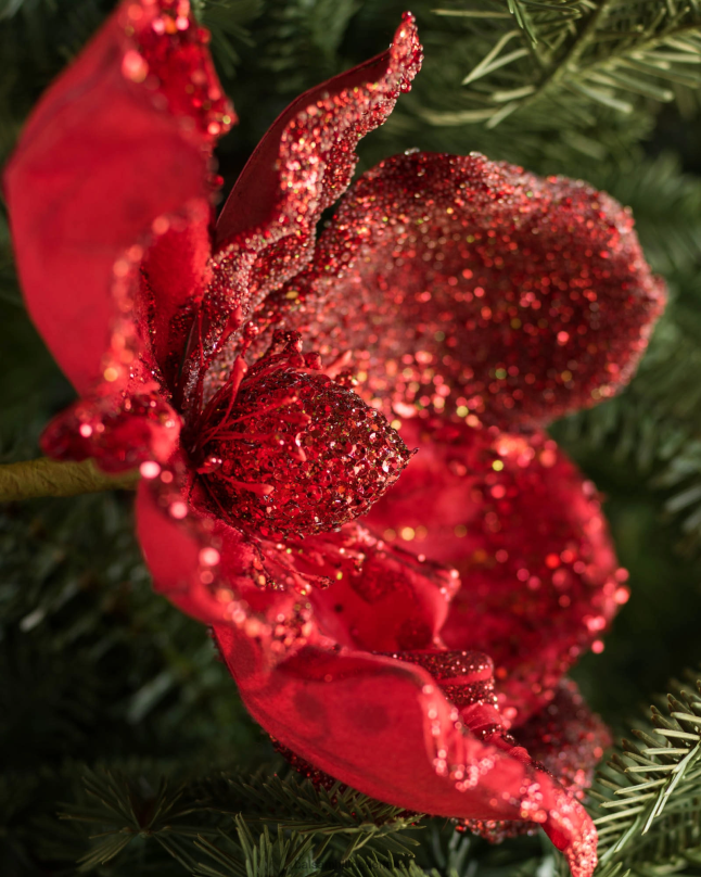Voeg een eigentijds tintje toe aan je kerstgebladerte met deze prachtige magnoliabloesems. hun feestelijke tinten passen prachtig bij bijna elk vakantiepalet.