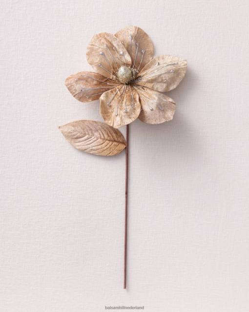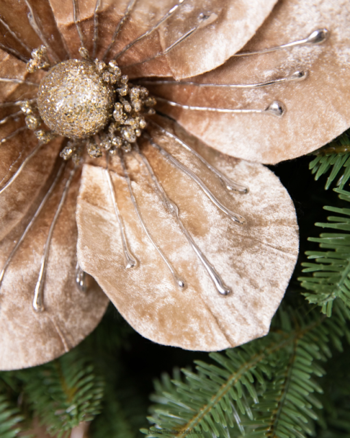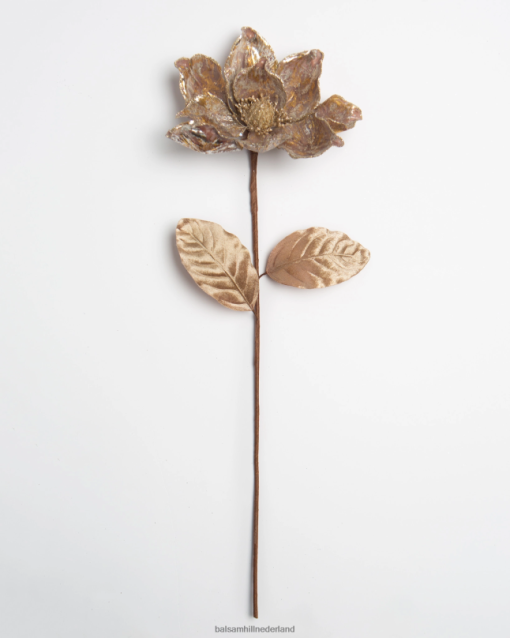 - met ivoren magnolia’s verfraaid met bronzen glitters