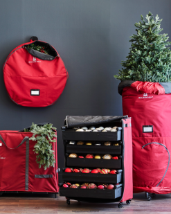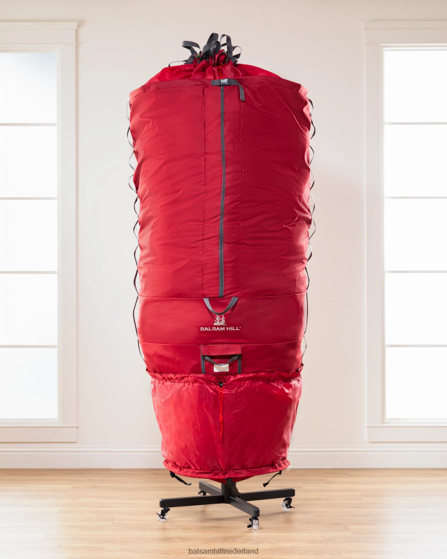 Transporteer en bewaar uw kerstboom gemakkelijk seizoen na seizoen. Deze tas is gemaakt van duurzame materialen, is verkrijgbaar in drie maten en is voorzien van een rolstandaard om het opbergproces te vereenvoudigen. verwijder gewoon alle versieringen uit uw boom, maak het bovenste boomgedeelte los en plaats het in een speciaal compartiment, en trek de opvouwbare tas omhoog over de boom.