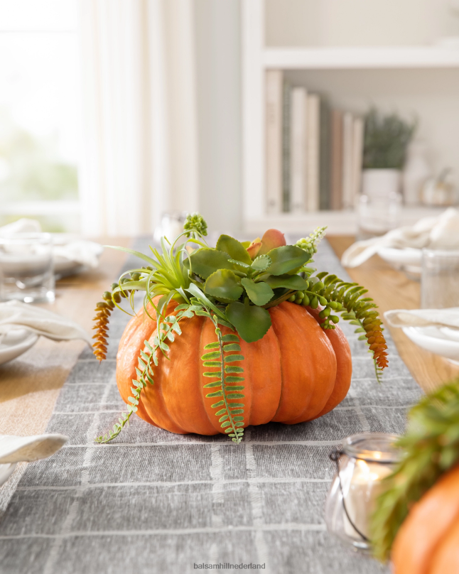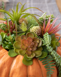 - Alle producten in deze collectie bestaan uit diverse vetplanten in een levensechte pompoen