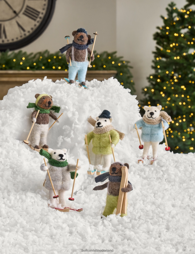 - met vilten beren in de winter kleding, sjaals en ski’s